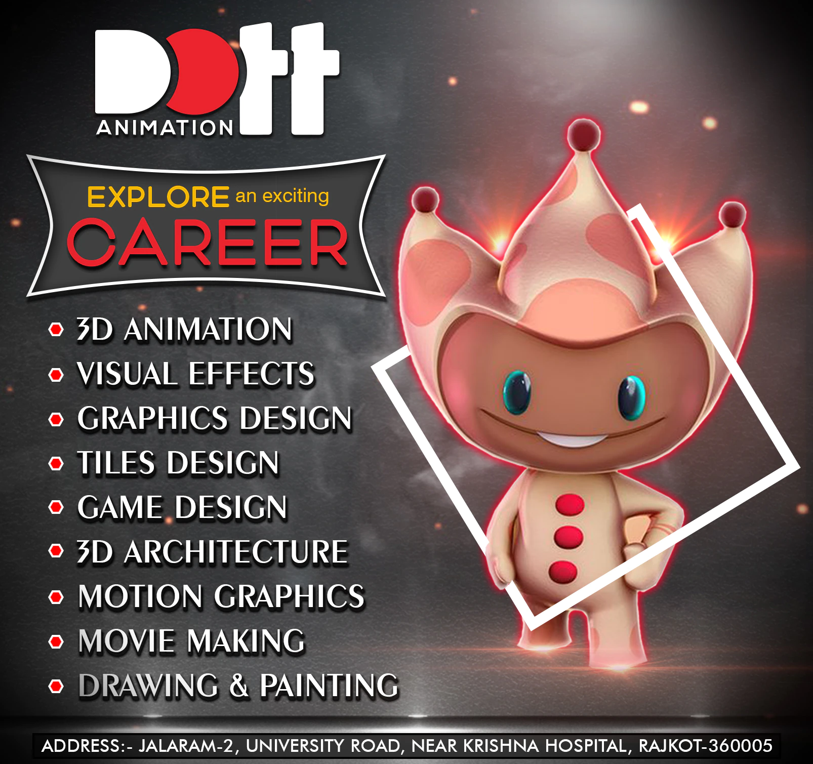 MAKE A CAREER IN GRAPHICS DESIGN - Rajkot Best Animation & amp; Design Animation in Rajkot Best 3D Animation In Rajkot Best Graphics Designing In Rajkot Best Vfx Institute in Rajkot Best Video Editing in Rajkot Best 3D Architecture In Rajkot Best Motion Graphics in Rajkot Our Network In Saurashtra And Kutch Rajkot, Morbi, Di Una, Metoda, Shapar, Wakaner, Jasdan, Amreli, Jetpur, Gondal, Dhoraji, Somnath, Dwarka, jamkhambhadiya, Upleta, Sasan, nakat mandvi, adipur, rapar, porabandar, Jamnagar, Junagadh